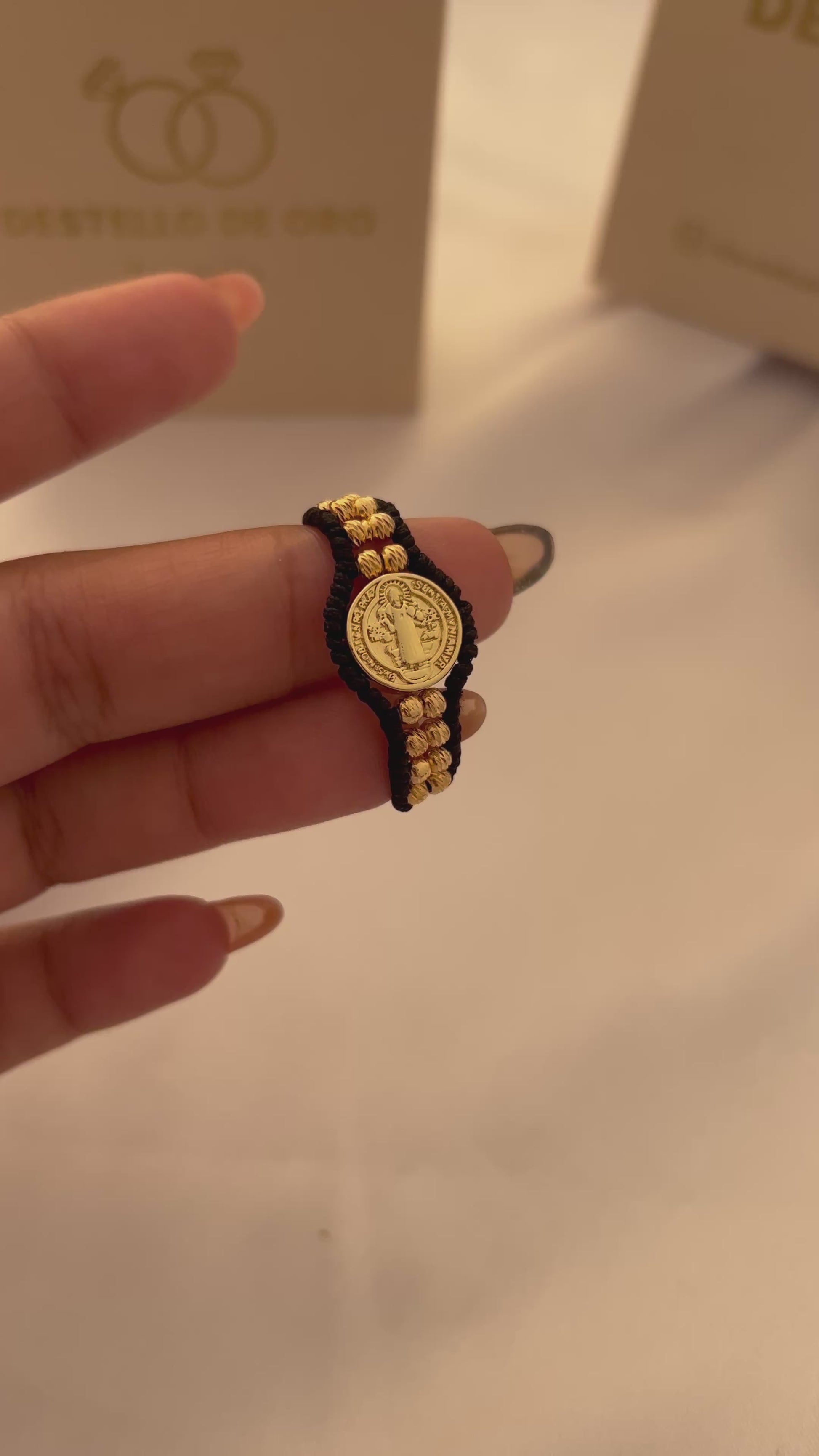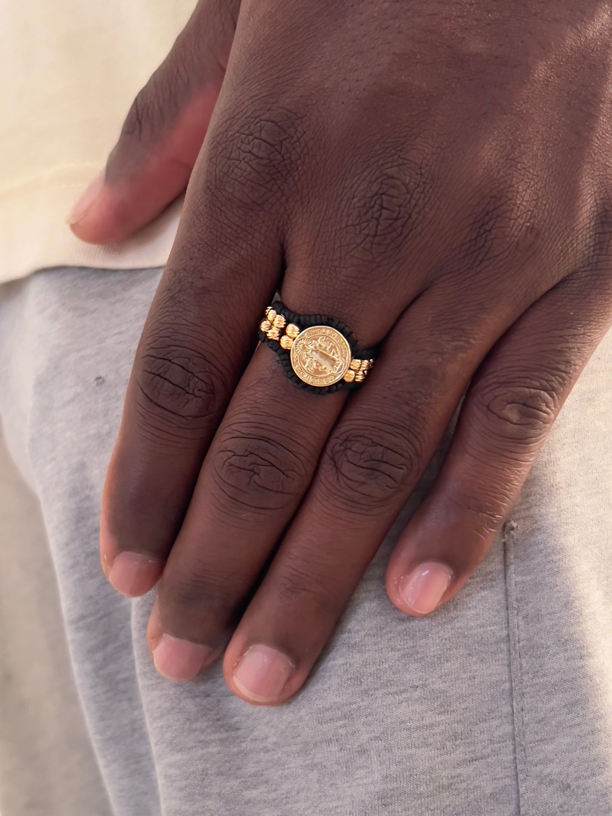 Anillo ajustable tejido, con la medalla de San Benito, róbate todas las miradas a donde vayas.