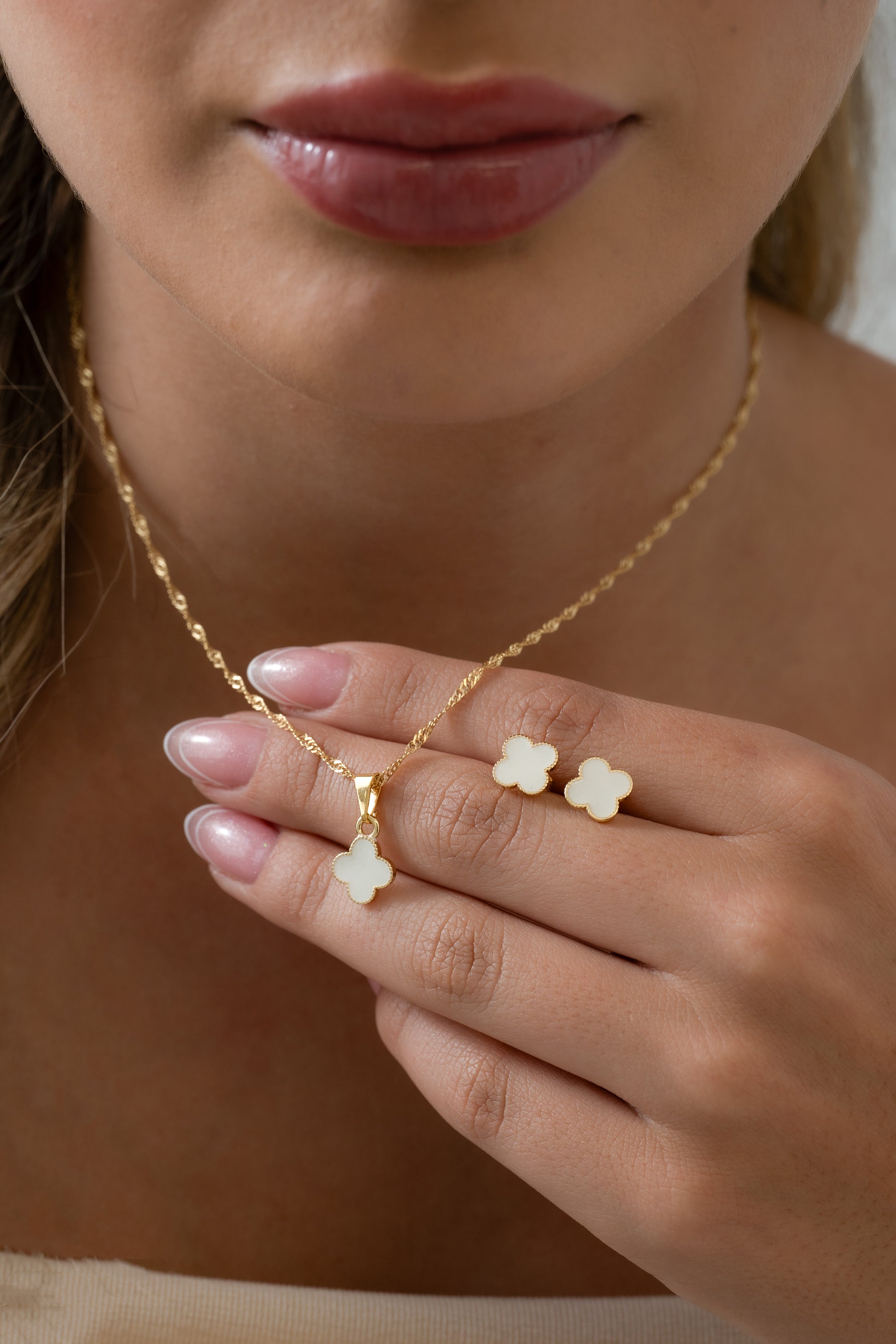 🔝 Trío Clover Fortuna | Cadena | 50 Cm | Dije + Aretes | OFERTA