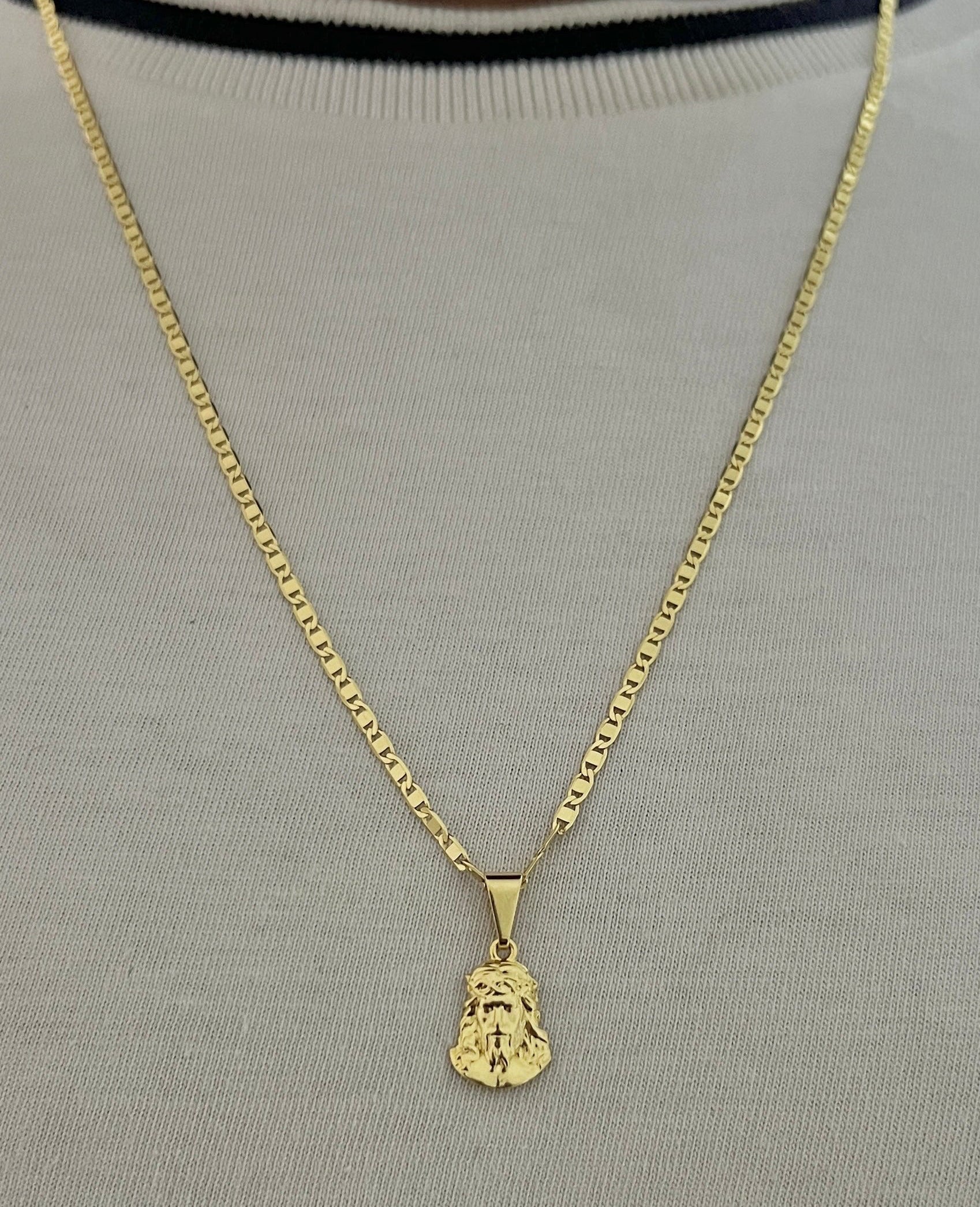💍 Incluye cadena tejido escalera de 65 Cm de largo + Dije de Cristo | un combo lleno de presencia y devoción.
