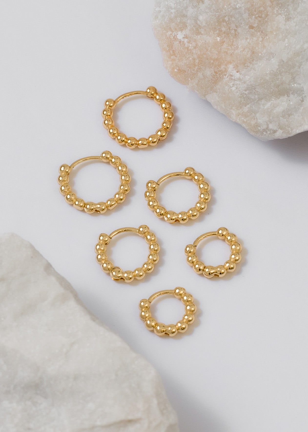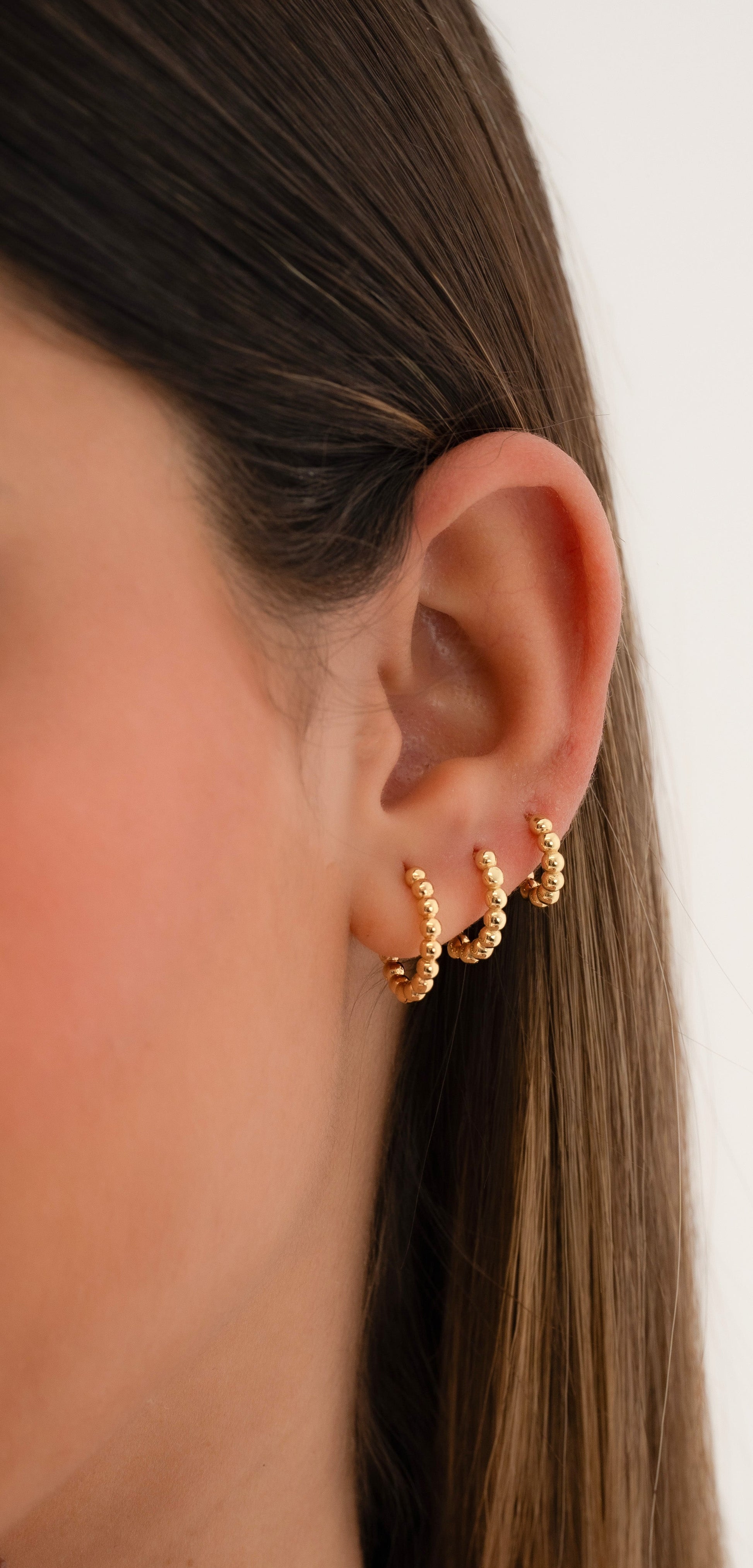 Recibe 3 pares de Aros en tamaños perfectamente graduados | Pequeño 08 Mm | Mediano 1 Cm | Grande 1,2 Cm | para crear un efecto escalonado.