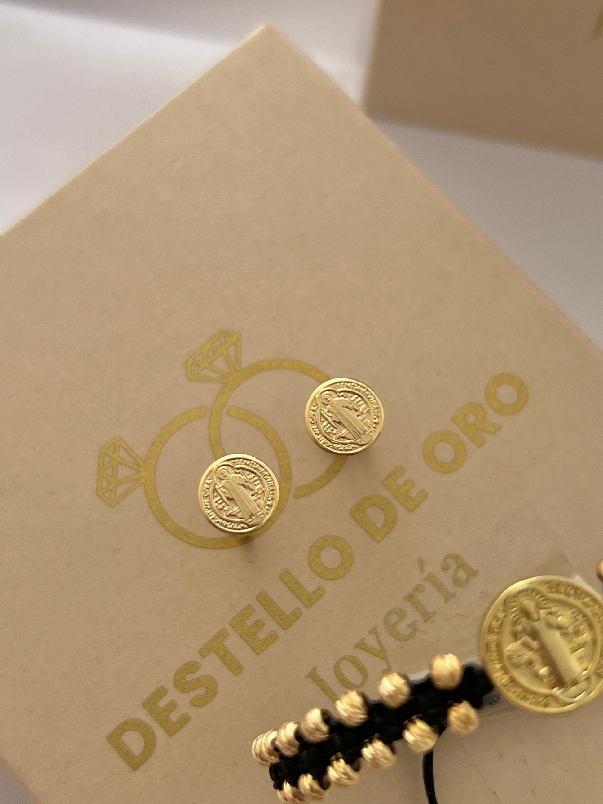 + Aretes Con Topo Rosca De Seguridad en oro laminado 18K, diseño lujoso que habla sin decir palabra.