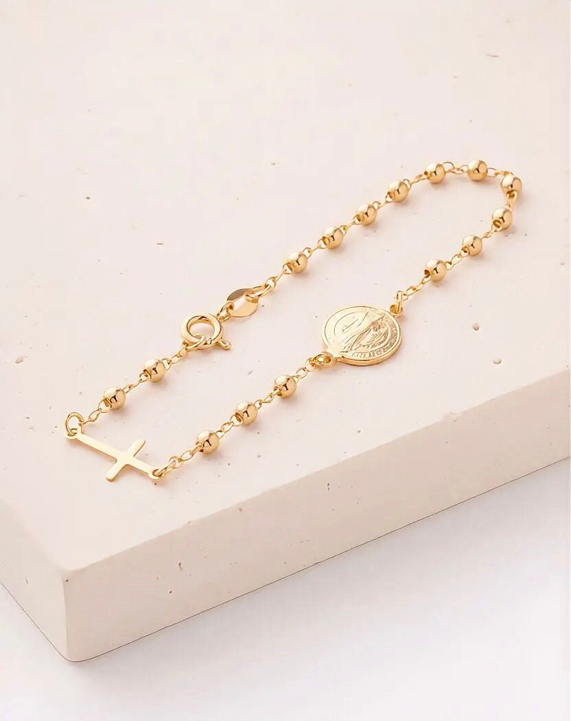 💛 Pulsera en oro laminado de 18k, inspirada en el símbolo de San Benito, reconocido por su significado de protección y fortaleza espiritual.