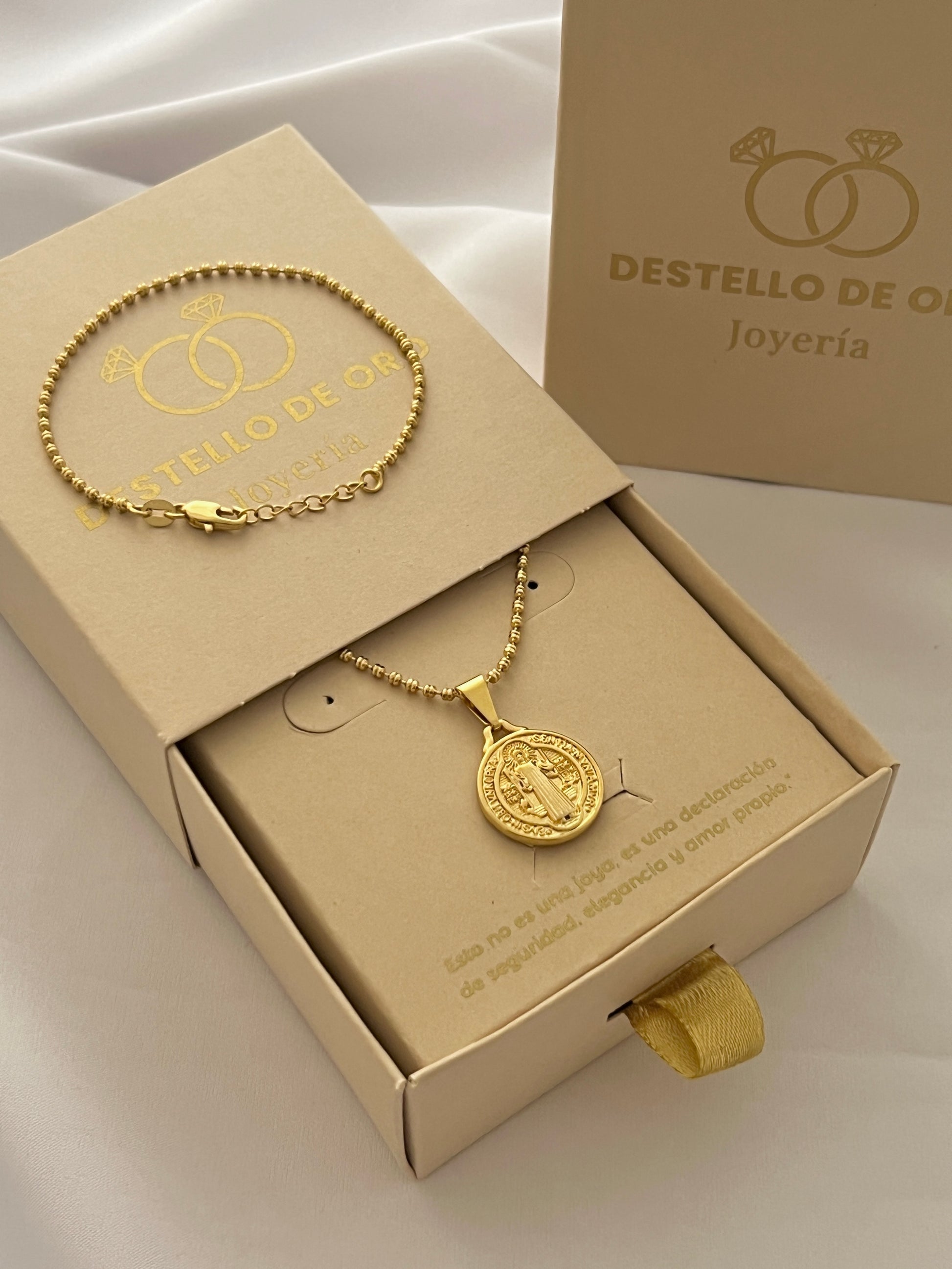 ⚡ Set cadena militar de 45Cm de largo — acompañada de un imponente dije San Benito.