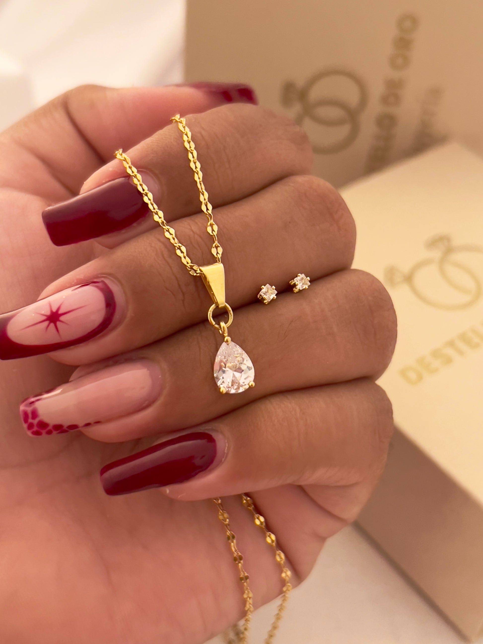 🔝 Set Glow | Cadena Espejo 45 Cm | Dije + Aretes | OFERTA